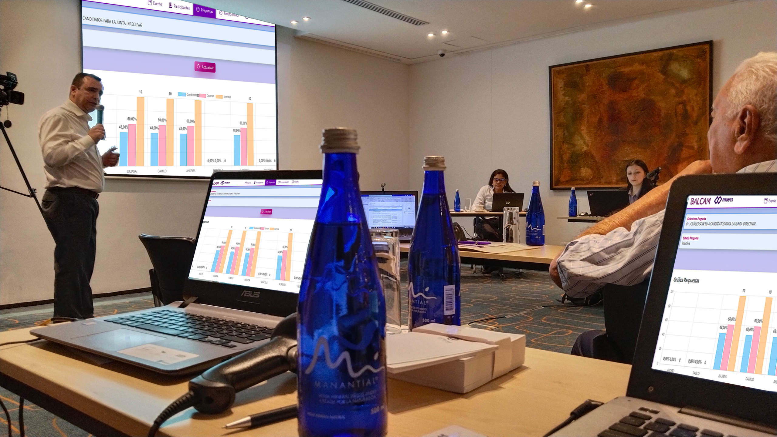 Asistentes presenciales y virtuales votan en la misma plataforma, en tiempo real.